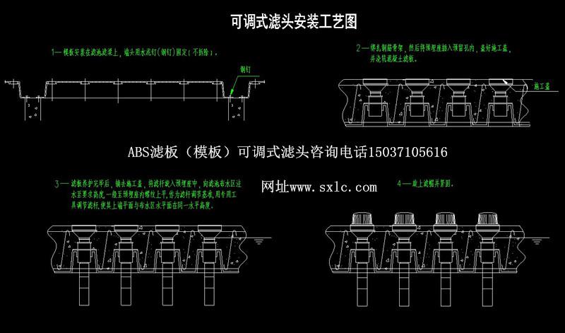 水廠濾池氣水反沖洗濾池常用的濾板有預(yù)制濾板和現(xiàn)澆整體濾板兩種:濾頭分為固定式和可調(diào)式兩種.固定式適應(yīng)于預(yù)制濾板:可調(diào)式長柄濾頭特別適應(yīng)于現(xiàn)澆濾板.也適應(yīng)于預(yù)制濾板.QSK-ll型可調(diào)式長柄濾頭原料采用高強(qiáng)度ABS顆粒樹脂(簡稱ABS工程塑料)經(jīng)高溫?zé)崛苡删苣ゾ叱尚汀?烧{(diào)式濾頭主要用:濾帽、濾桿、預(yù)埋座組成,濾桿上設(shè)有調(diào)節(jié)螺紋,可供上下調(diào)節(jié);且設(shè)有調(diào)節(jié)瓣與預(yù)埋座內(nèi)調(diào)節(jié)瓣防脫條結(jié)合,可控制濾桿調(diào)節(jié)精度,同時固定其位置。